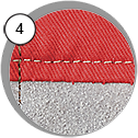 Прочная хлопковая ткань на спине позволяет воздуху циркулировать, а вставки из толстой, специально обработанной кожи надёжно защищают оператора от пыли и рикошета абразива. Костюм оснащен двойной застёжкой "молния", застежками "липучка" на брючинах и эластичными резинками на рукавах для защиты от попадания пыли и абразива под одежду. Костюм прошит двойным швом для обеспечения долговечности эксплуатации.