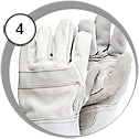 Стандартный костюм абразивоструйщика и кожаные перчатки защищают оператора от пыли и от рикошета абразива.